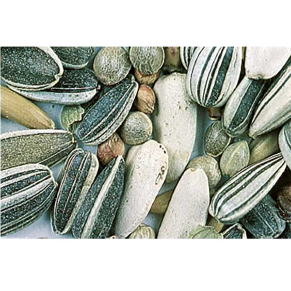 Milocorn, graines de tournesol striées, chènevis, graines de blé, graines d‘avoine, graines de tournesol blanches.